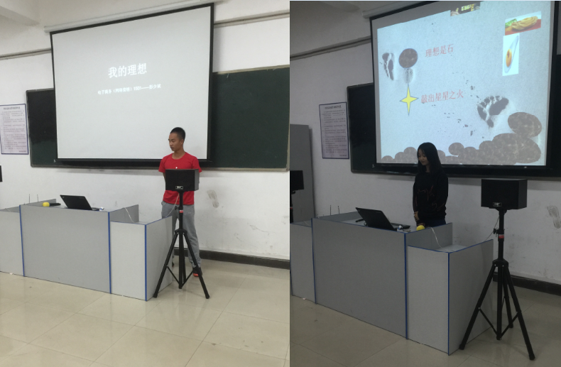 比賽伊始,輔導(dǎo)員何倩老師精彩的演講為此次大賽拉開序幕。參賽選手分別上臺講解自己的作品,圍繞“我的理想”、“我的家鄉(xiāng)”兩個主題,同學(xué)們精彩的演講內(nèi)容、激昂的聲調(diào)、高超的表現(xiàn)技巧、制作精美的PPT博得觀眾陣陣喝彩,時而莊重典雅、時而詼諧幽默,把整個比賽氛圍不斷推向高潮。
